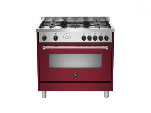 Bertazzoni La Germania Americana AMN965EVIT. Tipo di prodotto: Cucina, Colore del prodotto: Bordeaux, Acciaio inox, Tipo di controllo: Manopola. Tipo di piano cottura: Gas, Numero totale di fuochi: 5 Fornello(i), Numero di fuochi: 5 Fornello(i). Dimensione del forno: Largo, Sorgente di alimentazione del forno: Elettrico, Capacità netta del forno: 85…