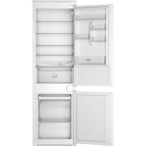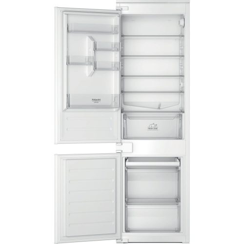 Hotpoint Ariston Frigorifero combinato ad incasso HAC18D021A1 LH. Capacità netta totale: 273 L. Cerniera porta: Sinistra. Classe climatica: SN-T, Emissione acustica: 34 dB. Capacità netta frigorifero: 194 L, Luce interna, Numero di ripiani frigorifero: 5, Numero di cassetti per verdura: 1. Capacità netta congelatore: 79 L, Capacità di congelamento: 3,5…