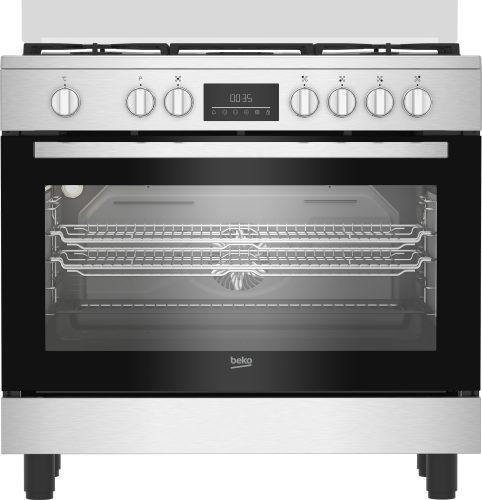 Beko BGM 11226 EX: Cucina Elettrica Multifunzione, 90x60 cm. Tipo di prodotto: Cucina, Colore del prodotto: Acciaio inox, Tipo di controllo: Manopola, Touch. Tipo di piano cottura: Gas, Numero totale di fuochi: 5 Fornello(i), Tipo di gas: Gas naturale (NG). Dimensione del forno: Largo, Sorgente di alimentazione del forno: Elettrico,…