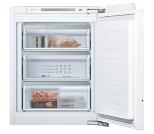 Neff GI1113FE0. Capacità netta congelatore: 72 L, Classe climatica: SN-T, Capacità di congelamento: 8 kg/24h, Autonomia senza energia elettrica: 21 h, Emissione acustica: 36 dB, Punteggio: 4*. Cerniera porta: Destra. Classe efficienza energetica: E, Consumo energetico annuo: 167 kWh. Colore del prodotto: Bianco