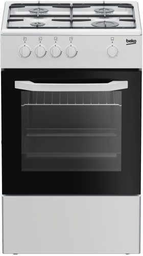 Beko CSG 42001 FW: Cucina a Gas, 50x50 cm. Tipo di prodotto: Cucina, Colore del prodotto: Bianco, Tipo di controllo: Manopola. Tipo di piano cottura: Gas, Numero totale di fuochi: 4 Fornello(i), Tipo di gas: Gas naturale (NG). Sorgente di alimentazione del forno: Gas, Apertura della porta del forno: Apertura…