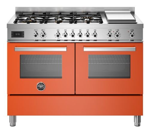 Bertazzoni PRO126G2EART. Tipo di prodotto: Cucina freestanding, Colore del prodotto: Arancione, Acciaio inox, Tipo di controllo: Manopola. Tipo di piano cottura: Combi, Numero totale di fuochi: 7 Fornello(i), Tipo di gas: NG + GPL (Propano/Butano). Dimensione del forno: Media, Sorgente di alimentazione del forno: Elettrico, Capacità netta del forno: 69…
