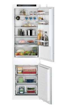 Siemens iQ300 KI86NVSE0. Capacità netta totale: 260 L. Cerniera porta: Destra. Classe climatica: SN-ST, Emissione acustica: 35 dB. Capacità netta frigorifero: 184 L, No Frost (frigorifero), Luce interna, Numero di ripiani frigorifero: 4, Numero di cassetti per verdura: 1. Capacità netta congelatore: 76 L, Capacità di congelamento: 4 kg/24h. Compartimento…