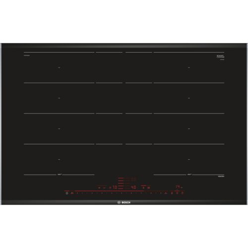 Bosch Serie 8 PXY875DE3E. Colore del prodotto: Nero, Posizionamento dell'apparecchio: Da incasso, Tipo di piano cottura: Ceramica. Tipo di controllo: Touch, Posizione di controllo: Frontale superiore. Potenza aggregata (elettrica): 7400 W, Tensione di ingresso AC: 220-240 V, Frequenza di ingresso AC: 50 - 60 Hz. Larghezza: 816 mm, Profondità: 527…