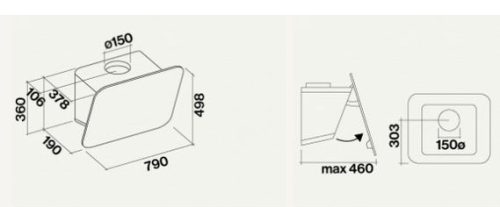 Falmec Tab. Potenza massima di estrazione: 800 m³/h, Tipo di estrazione: Aspirante, Classe di efficienza dinamica del fluido: A. Tipo: Cappa aspirante a parete, Colore del prodotto: Bianco, Diametro del raccordo di scarico: 15 cm. Tipo di filtro antigrasso: Metallo, Numero di filtri: 2 pz. Potenza lampadina: 1,2 W, Numero…
