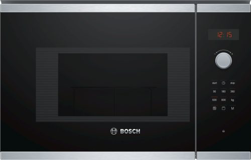 Bosch Serie 4 BFL523MS1F Microonde da incasso 38cm Acciaio inox. Posizionamento dell'apparecchio: Da incasso, Tipo di prodotto: Solo microonde, Capacità interna: 20 L, Potenza Microonde: 800 W, Display incorporato, Tipo di display: LED, Tipo di controllo: Manopola, Touch, Colore del prodotto: Acciaio inox