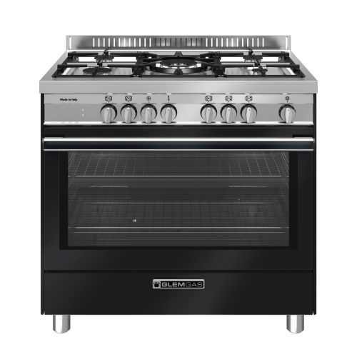 Glem Gas ST965MBK. Tipo di prodotto: Cucina, Colore del prodotto: Nero, Antracite, Acciaio inox, Tipo di controllo: Manopola. Tipo di piano cottura: Gas, Numero totale di fuochi: 5 Fornello(i), Tipo di superficie superiore: Acciaio inox. Dimensione del forno: Largo, Sorgente di alimentazione del forno: Elettrico, Capacità netta del forno: 104…