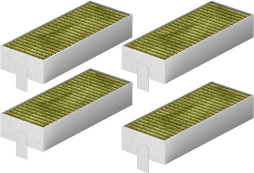 Bosch HEZ9VRCR1. Tipo: Filtro per cappa aspirante, Colore del prodotto: Verde, Bianco. Larghezza: 150 mm, Profondità: 230 mm, Altezza: 90 mm. Quantità per pacco: 4 pz, Peso dell'imballo: 500 g. Ampiezza del pallet: 8 cm, Lunghezza del pallet: 12 cm, Altezza del pallet: 10 cm