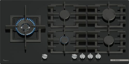 Bosch Serie 6 PPM9A6I40 Piano cottura a gas 90 cm 5 fuochi Vetro Nero. Colore del prodotto: Nero, Posizionamento dell'apparecchio: Da incasso, Dimensione della larghezza del piano cottura: 90 cm. Tipo di controllo: Manopola, Posizione di controllo: Frontale, Tipo di accensione elettronica: Accensione con manopola. Potenza aggregata (gas): 11500 W,…