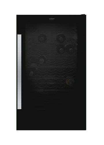 Candy DiVino CWC 150 ED/NF. Posizionamento dell'apparecchio: Libera installazione, Colore struttura: Nero, Colore interno: Nero. Capacità bottiglie: 41 bottiglia/bottiglie, Tipo di prodotto: Cantinetta vino con compressore, Intervallo temperatura (zona 1): 7 - 18 °C. Tipo di controllo: Manopola, Tipo di lampada: LED. Classe efficienza energetica: G, Consumo energetico annuo: 143…