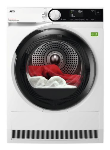 AEG Series 8000 TR8HD9A. Posizionamento dell'apparecchio: Libera installazione, Tipo di carica: Caricamento frontale, Sistema di asciugatura: Pompa di calore. Capacità cestello: 9 kg, Classe di efficienza della condensazione: B, Programmi di asciugatura: Cotone, Delicati/Seta, Piumino/piumone, Eco, Hygienic drying, Mix, Shirts, Sintetico, Lana. Classe efficienza energetica: A, Consumo energetico per 100…