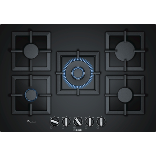 Bosch Serie 6 PPQ7A6B20. Colore del prodotto: Nero, Posizionamento dell'apparecchio: Da incasso, Dimensione della larghezza del piano cottura: 75 cm. Tipo di controllo: Manopola, Posizione di controllo: Frontale superiore. Potenza aggregata (gas): 11500 W, Tensione di ingresso AC: 220-240 V, Frequenza di ingresso AC: 50 - 60 Hz. Larghezza: 752…