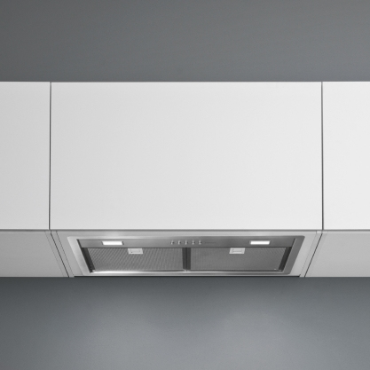 Falmec Built-in EVO. Potenza massima di estrazione: 600 m³/h, Tipo di estrazione: Aspirante/Filtrante, Classe di efficienza dinamica del fluido: D. Tipo: Integrato, Colore del prodotto: Acciaio inox, Tipo di controllo: Pulsanti. Tipo di filtro antigrasso: Metallo/Carbone. Potenza lampadina: 1,2 W, Numero di lampadine: 2 lampadina(e), Tipo di Lampadina: LED. Classe…