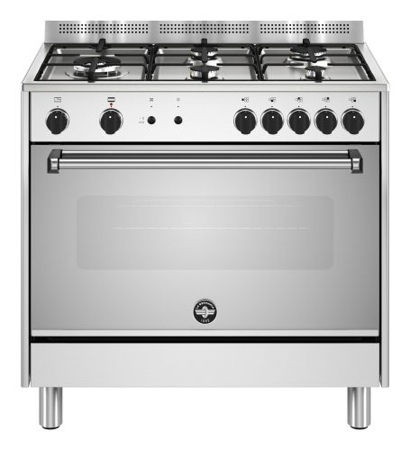 Bertazzoni La Germania Americana AMN965LGXV/24. Tipo di prodotto: Cucina, Colore del prodotto: Acciaio inox, Tipo di controllo: Manopola. Tipo di piano cottura: Gas, Numero totale di fuochi: 5 Fornello(i), Numero di fuochi: 5 Fornello(i). Dimensione del forno: Largo, Sorgente di alimentazione del forno: Elettrico/Gas, Capacità netta del forno: 115 L.…