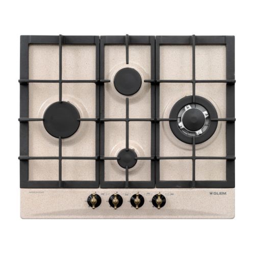 Glem Gas GT645HSA. Colore del prodotto: Sabbia, Posizionamento dell'apparecchio: Da incasso, Dimensione della larghezza del piano cottura: 60 cm. Bruciatore piccolo: 1000 W, Bruciatore medio: 1750 W, Bruciatore grande: 3000 W. Tipo di controllo: Manopola, Posizione di controllo: Frontale superiore. Larghezza: 600 mm