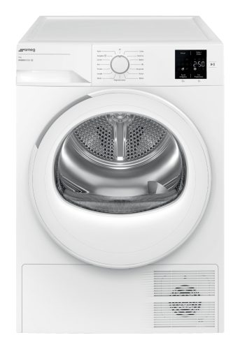 Smeg DR09EE. Posizionamento dell'apparecchio: Libera installazione, Tipo di carica: Caricamento frontale, Sistema di asciugatura: Pompa di calore. Capacità cestello: 9 kg, Classe di efficienza della condensazione: C, Programmi di asciugatura: Biancheria da letto, Cotone, Delicati/Seta, Igiene/Allergy Care, Jeans/denim, Outdoor/sport,.... Classe efficienza energetica: E, Consumo energetico per 100 cicli: 156 kWh,…