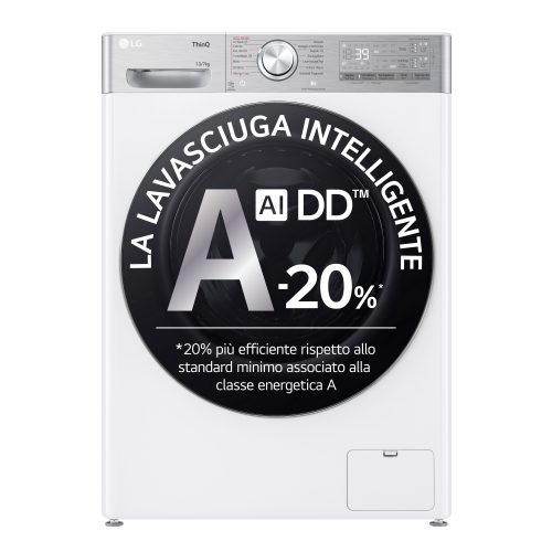 LG D4R9513TPWC Lavasciuga 13/7kg AI DD, Classe D, 1400 giri, TurboWash 360, Autodosaggio. Tipo di carica: Caricamento frontale, Posizionamento dell'apparecchio: Libera installazione, Colore del prodotto: Argento, Bianco. Capacità di asciugatura: 7 kg, Velocità di centrifuga massima: 1400 Giri/min, Classe di efficienza della centrifuga: A. Angolo di apertura della porta: 150°.…