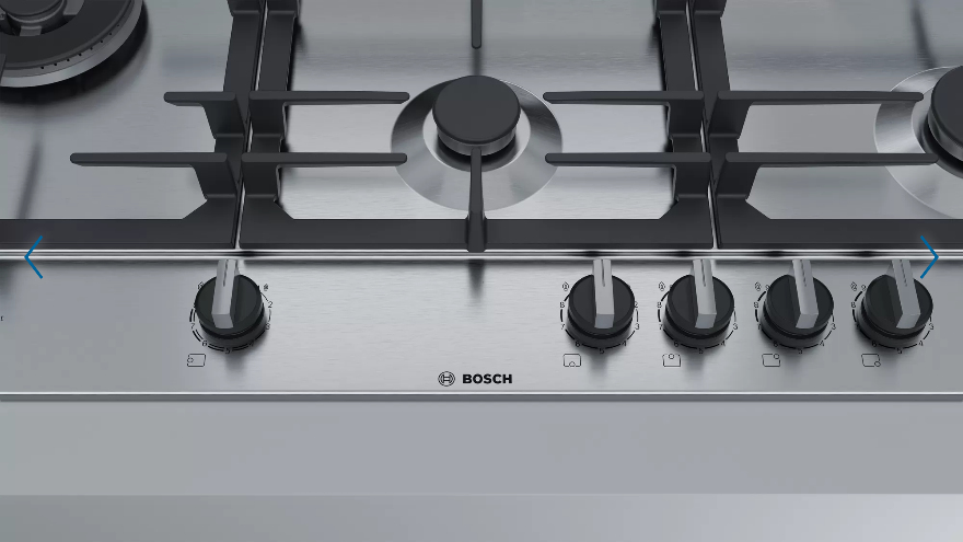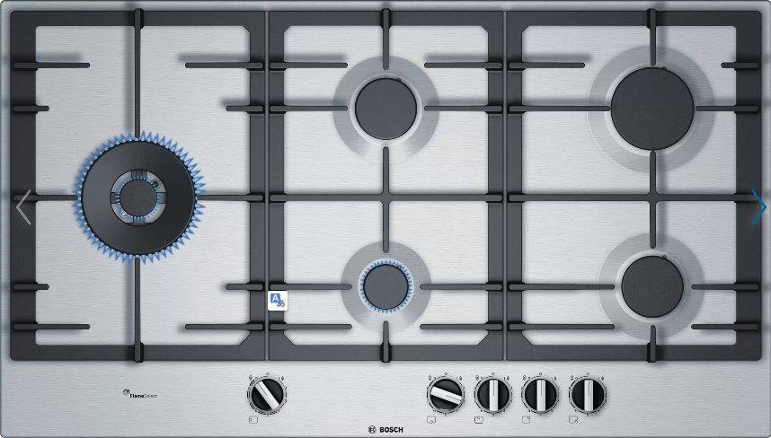 I piani cottura a gas con FlameSelect sono dotati di nove livelli di potenza accuratamente definiti, i quali permettono la regolazione del calore necessario in modo semplice e affidabile. Per risultati di cottura semplicemente perfetti.