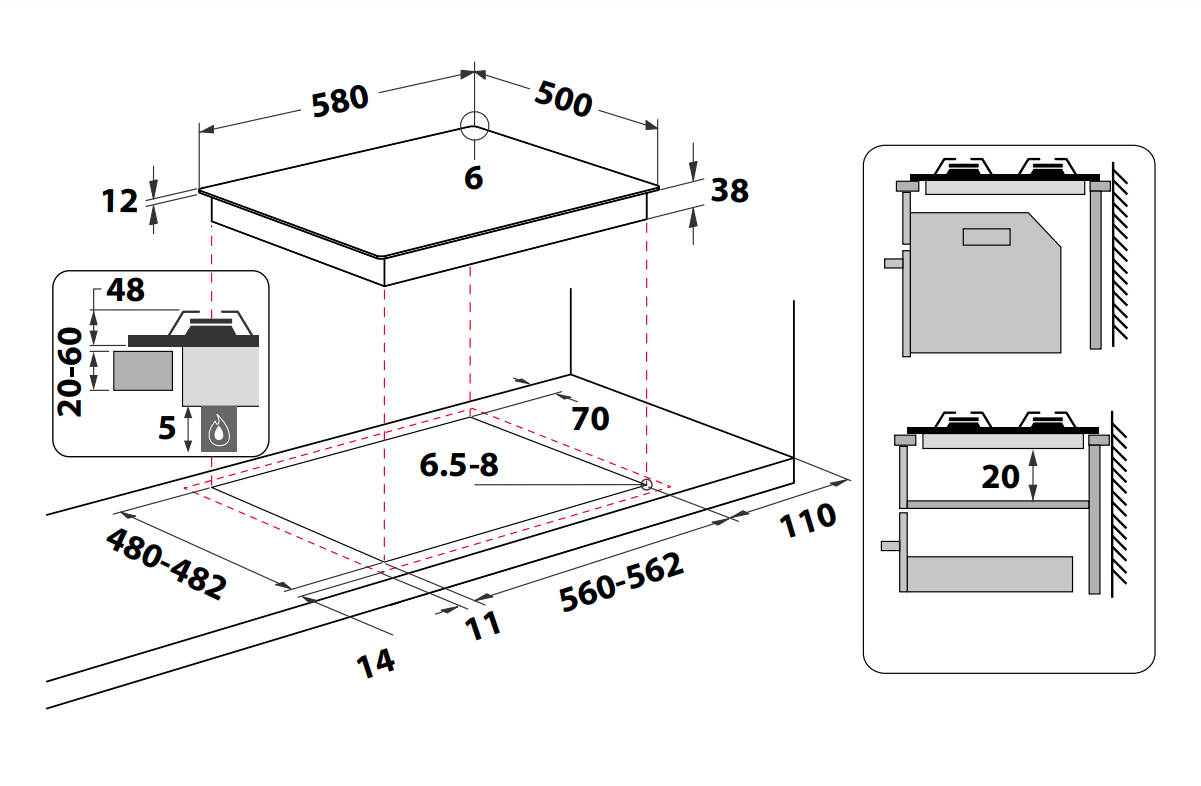| Dimensione della larghezza del piano cottura (cm) | 58 |