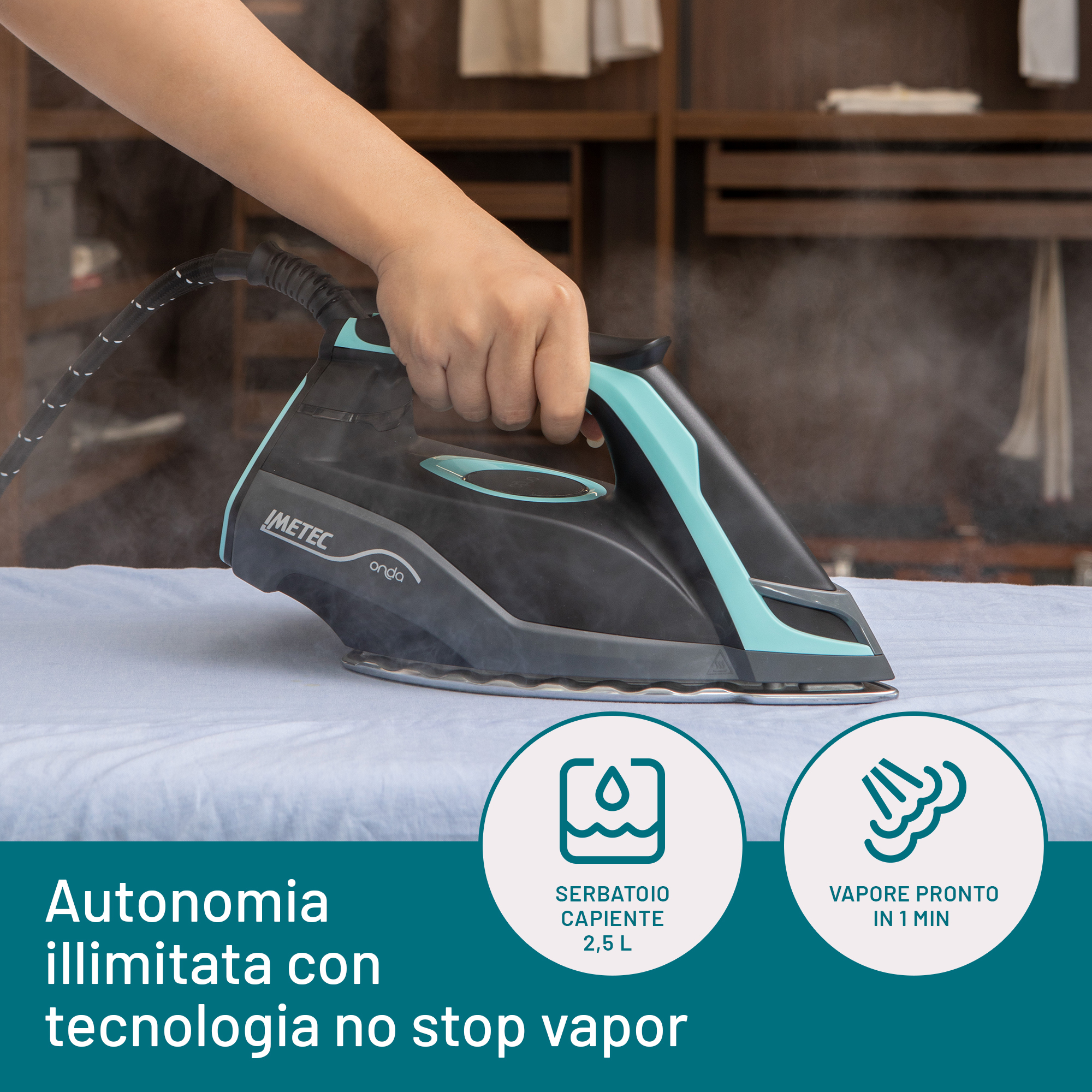 L’esclusiva piastra a onde brevettata di Imetec concentra il vapore tra un’onda e l’altra facendolo penetrare in modo omogeneo nei tessuti, garantendo una stiratura ottimale già dalla prima passata, nel massimo rispetto delle fibre