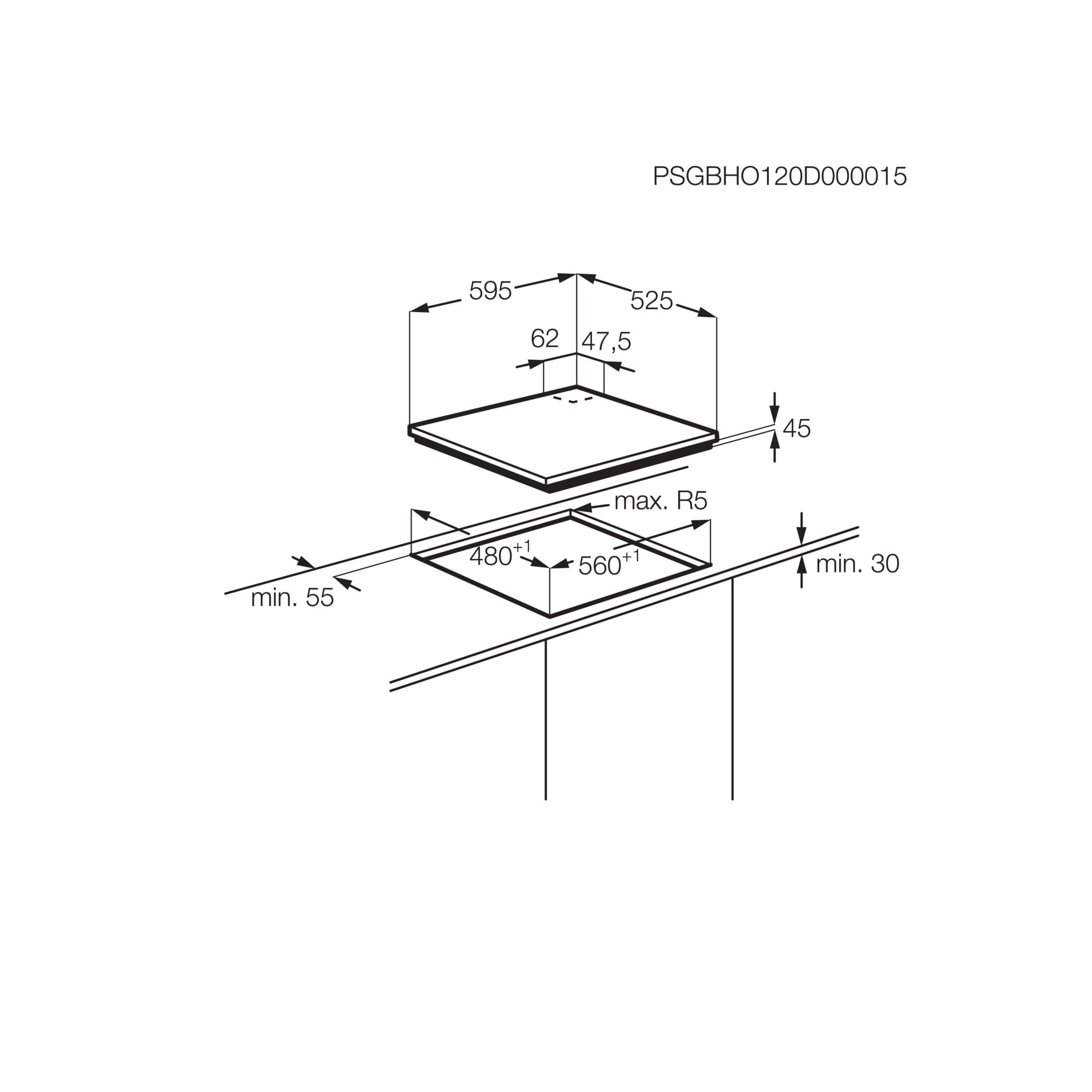 Dimensione della larghezza del piano cottura (cm) 75 75 75