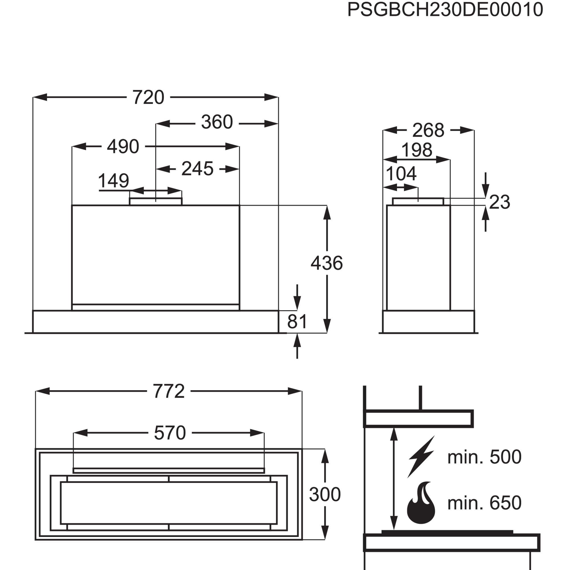 | Distanza minima dal piano cottura elettrico (cm) | 50 | 50 | 50 |