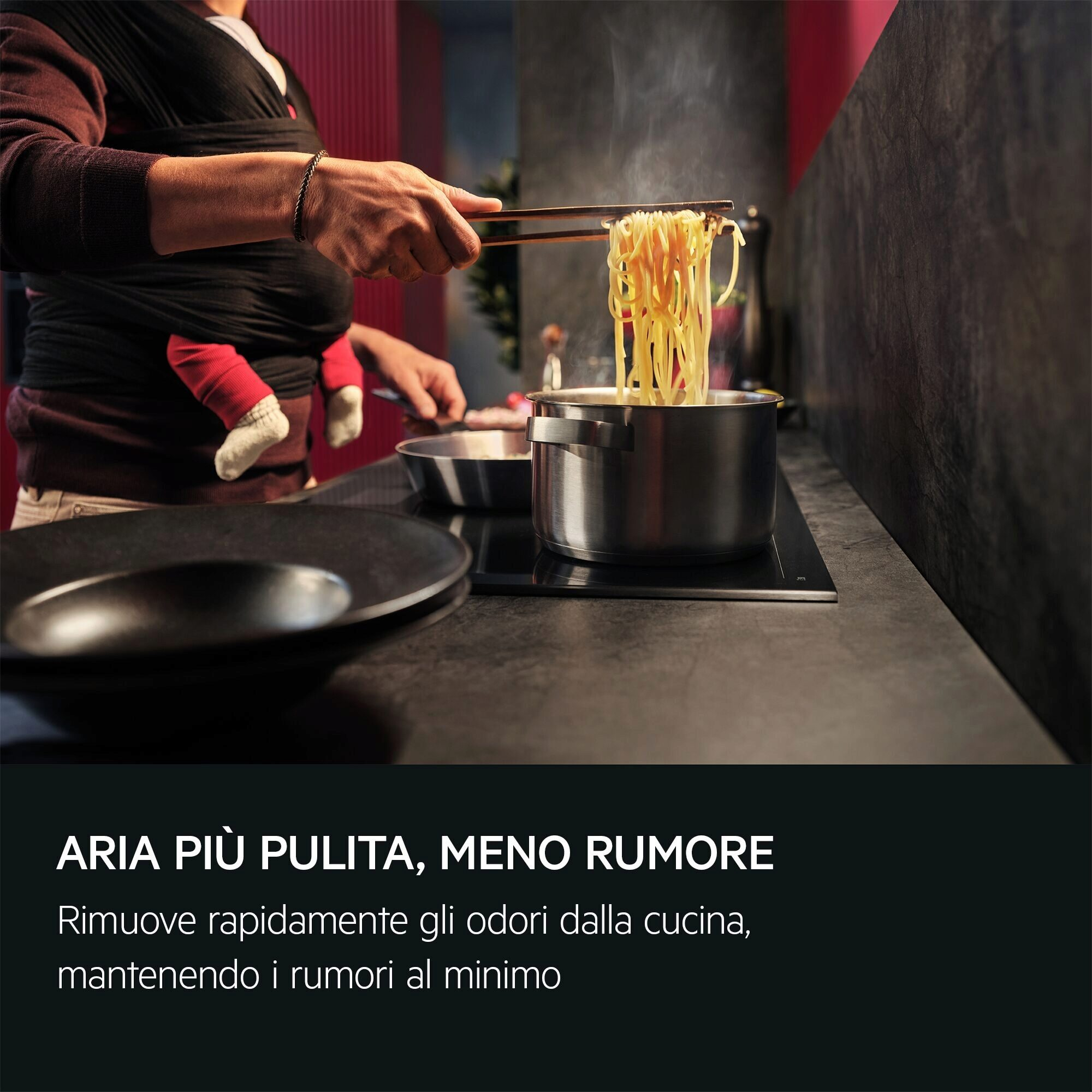 Le cappe AEG mantengono l’aria pulita con i nostri modelli più efficienti dal punto di vista energetico con classe energetica A e superiore. Concentratevi sulla cucina con la vostra famiglia e i vostri amici in una cucina fresca con meno rumore in un modo più efficiente dal punto di vista energetico.