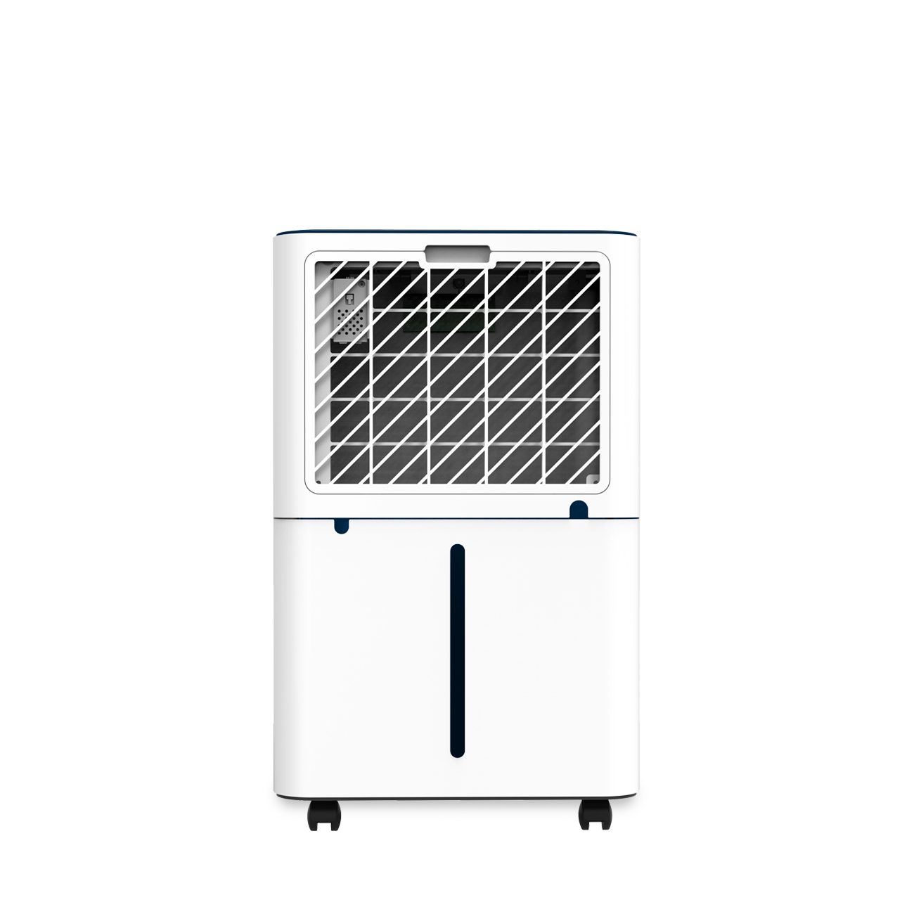 finitura matt, di colore bianco puro, impreziosita da dettagli blu, ne fanno un apparecchio al contempo