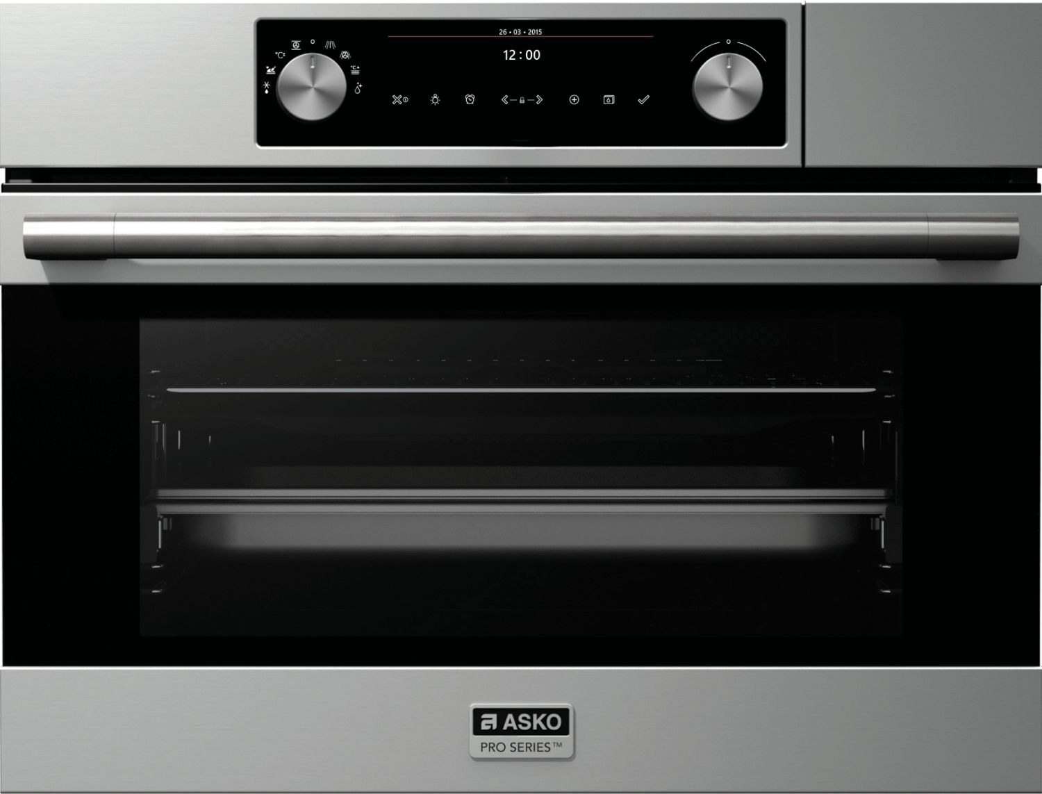 Asko OCS8483S. Dimensione del forno: Media, Tipo di forno: Forno elettrico, Capacità interna forno totale: 50 L. Posizionamento dell’apparecchio: Da incasso, Colore del prodotto: Nero, Acciaio inox, Tipo di controllo: Manopola, Touch. Consumo energetico (convenzionale): 0,82 kWh, Consumo energetico (convezione forzata): 0,62 kWh, Scala di efficienza energetica: Da A+++ a D. Larghezza: 595 mm, Profondità: 546 mm, Altezza: 455 mm. Larghezza imballo: 660 mm, Profondità imballo: 700 mm, Altezza imballo: 55 mm