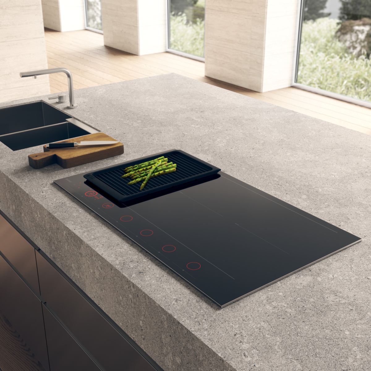Quando una pentola viene messa su una zona di cottura, il controllo associato si illumina. A questo punto bisogna solo scegliere l’impostazione di calore desiderata. In questo modo, l’utilizzo del piano è più intuitivo: sai sempre a quale comando appartiene una zona di cottura e non devi accenderla separatamente. Se la pentola viene sollevata, la zona si ferma automaticamente e riparte quando la pentola è di nuovo in posizione.