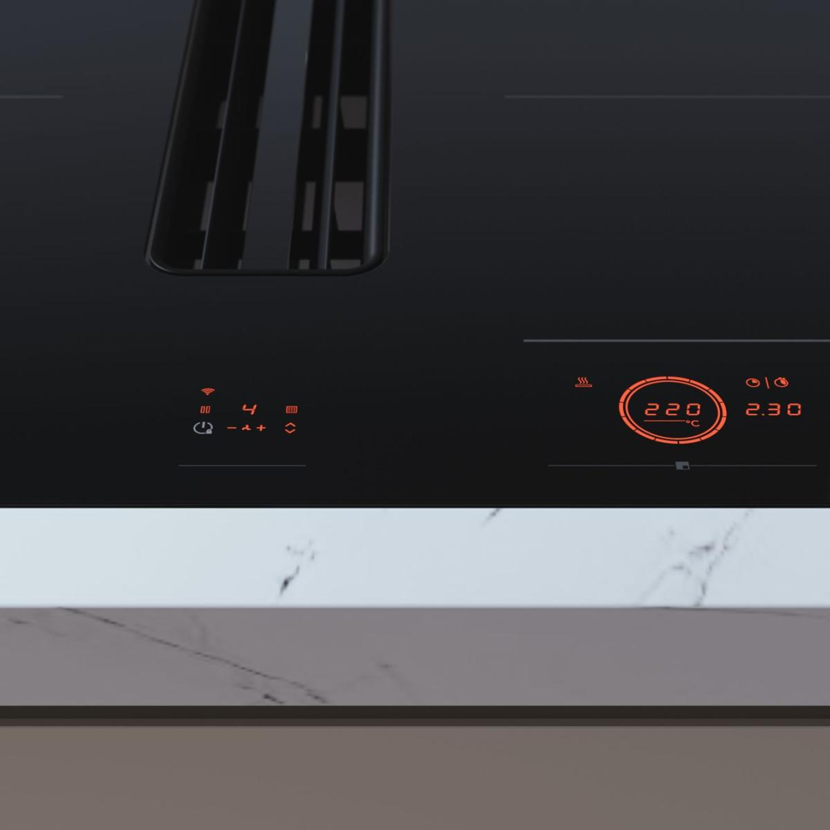 Asko Elements HIHD854GF. Colore del prodotto: Nero, Posizionamento dell’apparecchio: Da incasso, Dimensione della larghezza del piano cottura: 83 cm. Tipo di controllo: Touch, Posizione di controllo: Frontale superiore, Tipo di display: LED. Tipo di estrazione: Aspirante/Filtrante, Potenza massima di estrazione: 617 m³/h, Potenza motore: 170 W. Potenza aggregata (elettrica): 7360 W, Tensione di ingresso AC: 220-240 V, Frequenza di ingresso AC: 50/60 Hz. Larghezza: 830 mm, Profondità: 520 mm, Altezza: 310 mm