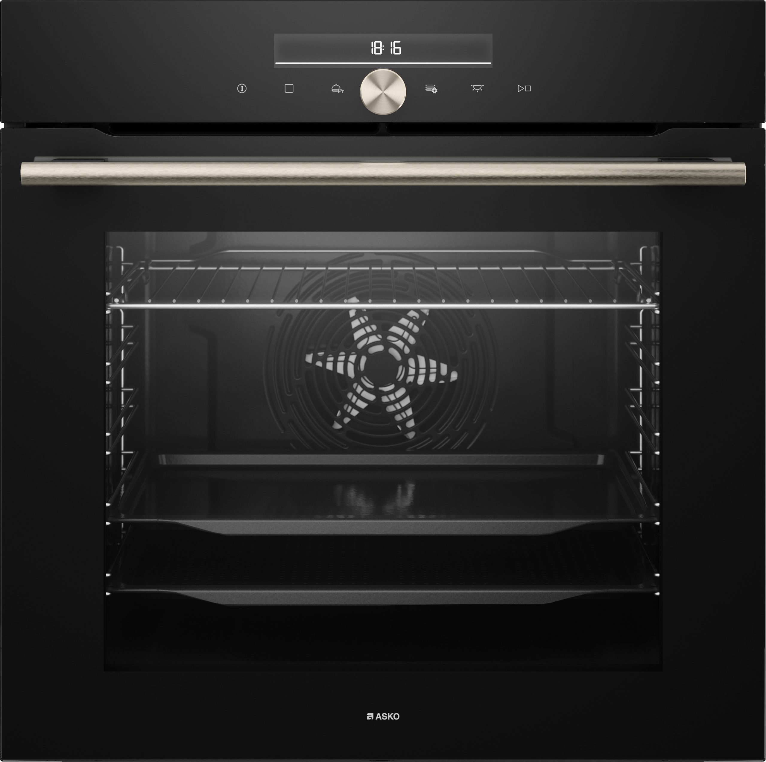 Asko OP86331BG. Dimensione del forno: Largo, Tipo di forno: Forno elettrico, Capacità interna forno totale: 77 L. Posizionamento dell’apparecchio: Da incasso, Colore del prodotto: Nero, Tipo di controllo: Manopola, Touch. Tipo di orologio: Elettronico, Tipo di timer: Digitale. Consumo energetico (convenzionale): 1,03 kWh, Consumo energetico (convezione forzata): 0,71 kWh, Scala di efficienza energetica: Da A+++ a D. Quantità lampade: 2 lampada(e)