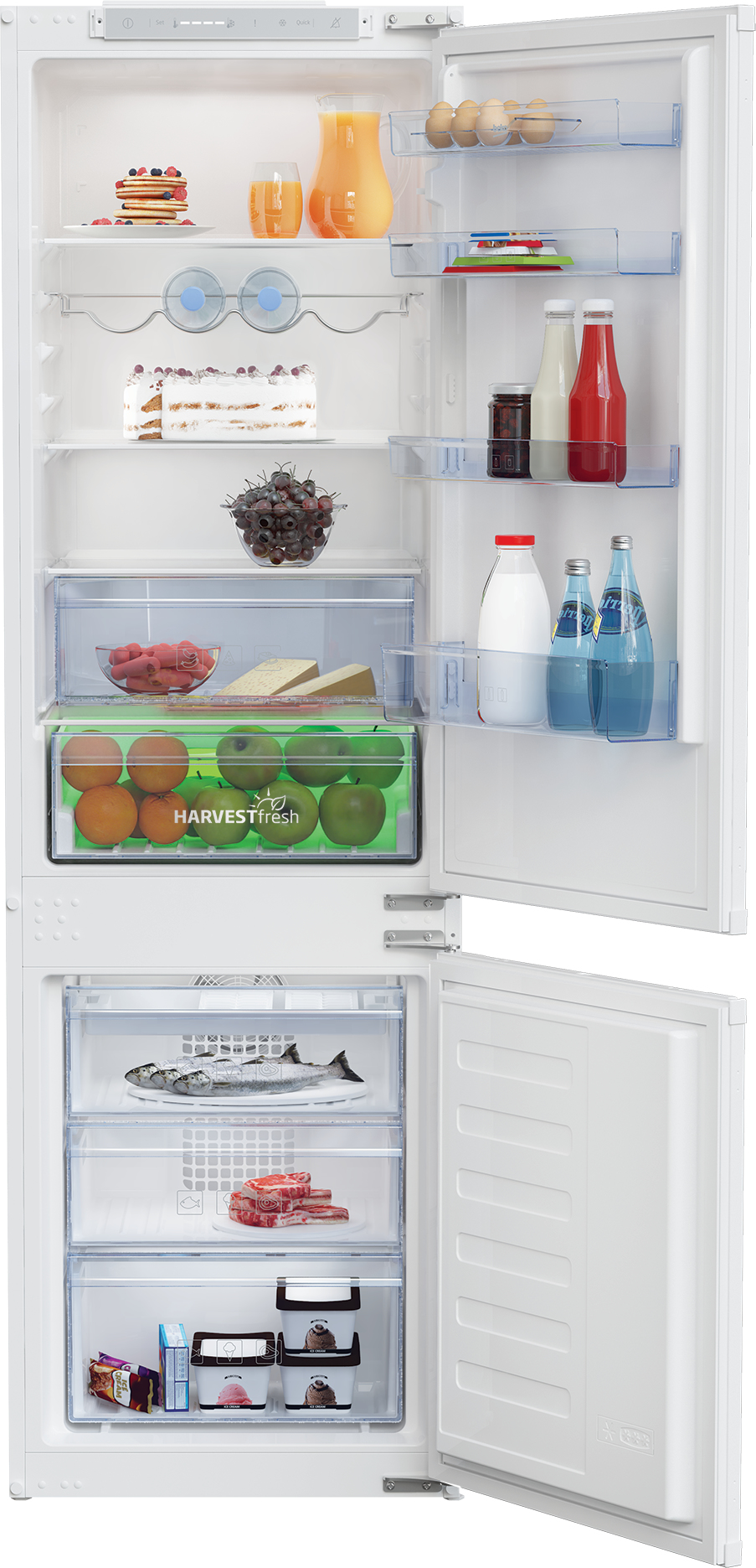 Beko BCHA275E4SN. Capacità netta totale: 262 L. Cerniera porta: Destra, Tipo di display: LED. Classe climatica: SN-ST, Emissione acustica: 38 dB. Capacità netta frigorifero: 193 L, Luce interna, Numero di ripiani frigorifero: 3, Numero di cassetti per verdura: 1. Capacità netta congelatore: 69 L, Capacità di congelamento: 3,5 kg/24h. Compartimento zona fresca. Classe efficienza energetica: E, Consumo energetico annuo: 224 kWh. Colore del prodotto: Bianco