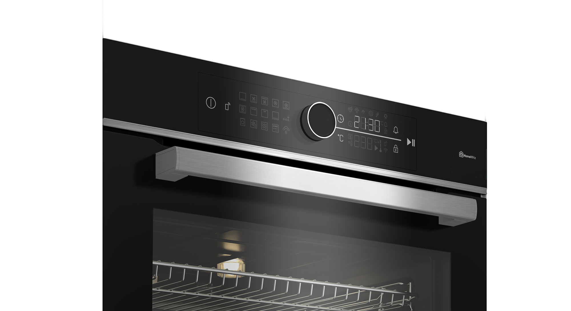 Vuoi sapere come procede la cottura, ma non vuoi aprire la porta del forno per evitare che il calore si disperda? L’Illuminazione Alogena ti offre una visuale completa del forno per tenere d’occhio le tue ricette a porta chiusa.