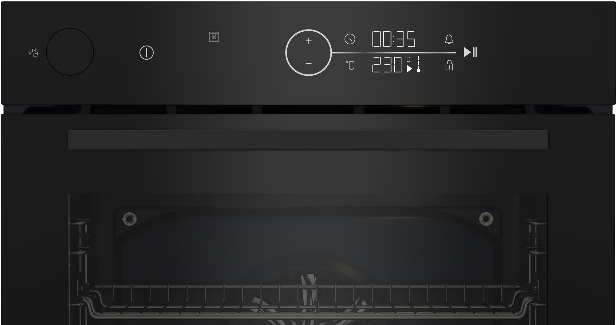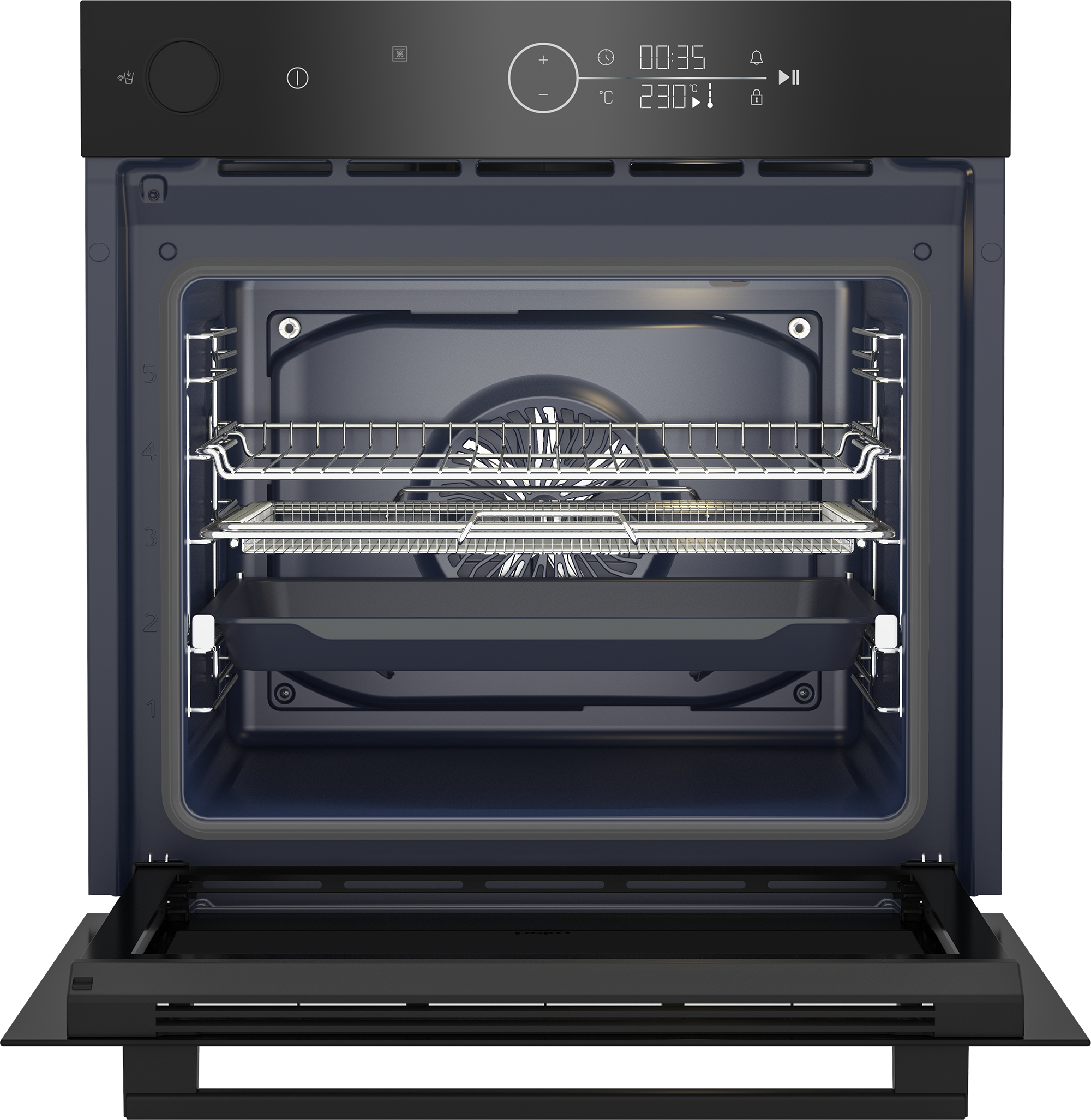 Beko BCBISA17400KSBMPS: Forno Termoventilato, Standard 60 cm, 72 L. Tipo di forno: Forno elettrico, Capacità interna forno totale: 72 L, Potenza totale del forno: 3300 W. Colore del prodotto: Nero, Tipo di display: LED. Classe efficienza energetica: A+, Tensione di ingresso AC: 220 – 240 V, Frequenza di ingresso AC: 50 Hz. Quantità lampade: 1 lampada(e), Tipo di lampada: Alogena, posizione delle illuminazioni: Alto. Tecnologie Beko (cottura): AirFry, SteamAid