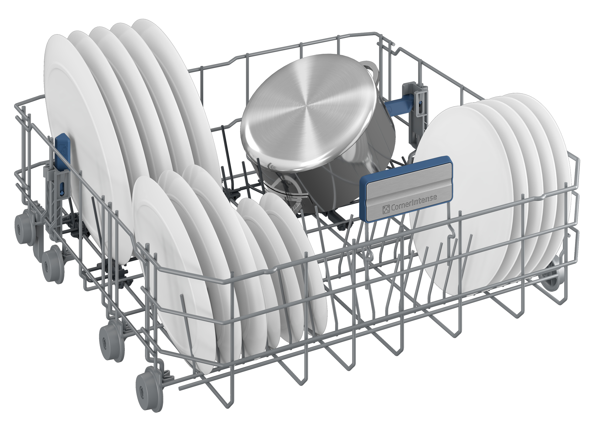 A differenza dei bracci irroratori classici che si muovono in senso circolare, CornerIntense™ è progettato per pulire un’area rettangolare. Acqua e detersivo raggiungono così ogni punto, angoli compresi