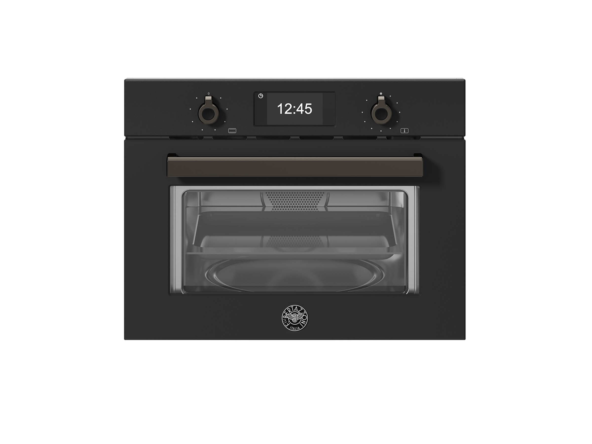 Bertazzoni F457PROMWTN. Dimensione del forno: Piccolo, Tipo di forno: Forno elettrico, Capacità interna forno totale: 32 L. Posizionamento dell’apparecchio: Da incasso, Colore del prodotto: Nero, Tipo di controllo: Manopola. Corrente: 16 A, Potenza: 2950 W, Classe di efficienza energetica (vecchia): A. Quantità lampade: 1 lampada(e), Tipo di lampada: Alogena, posizione delle illuminazioni: Alto. Larghezza del compartimento: 56,8 cm, Profondità del compartimento: 56 cm, Altezza del compartimento: 46 cm