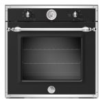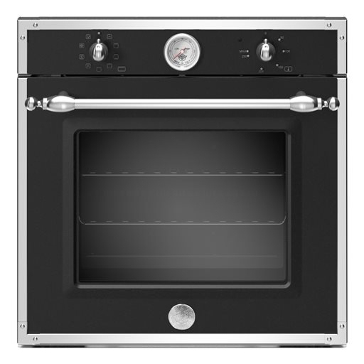 Questo forno elettrico da incasso da 60 cm della Serie Heritage offre la cavità più grande della sua categoria: 76 litri. Grazie alle sue 9 funzioni è ideale per cuocere a temperature medio-basse, come nel caso dei lievitati o di ricette che richiedono cotture lente, come quella in casseruola. La cottura statica è perfetta per le torte, mentre quella ventilata assicura una distribuzione uniforme del calore su tutti i cinque livelli per arrostire e cuocere senza che i sapori si mescolino. Il grill a infrarossi garantisce rosolatura e grigliatura intense su ampie superfici. Il controllo del forno è reso agevole dalle manopole in metallo e preciso dal termometro analogico firmato Bertazzoni. La porta è dotata di pratica apertura silenziosa e controllata e di maniglia in metallo. Il doppio vetro assicura sicurezza ed efficienza. Disponibile in Nero opaco e Avorio con finitura cromata.