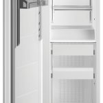 Il sistema laterale di circolazione dell’aria offre una distribuzione uniforme dell’aria fredda attorno al vano congelatore. Il sistema di raffreddamento No Frost elimina la necessità di sbrinare il freezer. Queste tecnologie interagiscono per riportare il congelatore alla temperatura impostata più velocemente dopo l’apertura della porta.