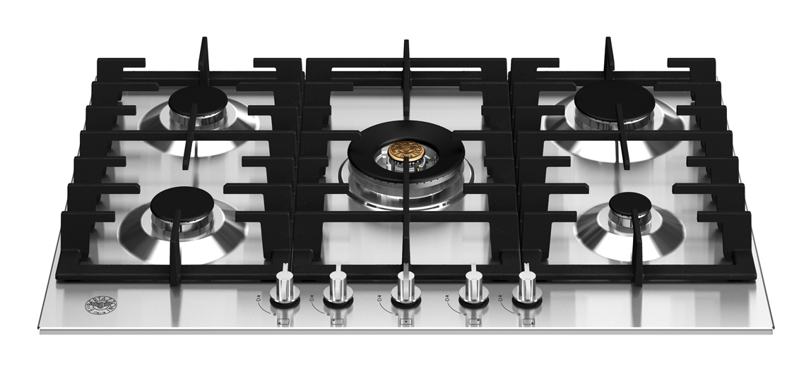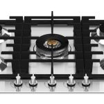 Questo piano cottura a gas da 75 cm della Serie Modern è dotato di cinque fuochi in alluminio e di precise manopole in metallo, allo scopo di rendere la cottura semplice e impeccabile. Il bruciatore wok centrale da 4 kW garantisce ulteriore versatilità. Le griglie di appoggio in ghisa sono robuste e sicure. Disponibile in acciaio inossidabile e in smalto nero.