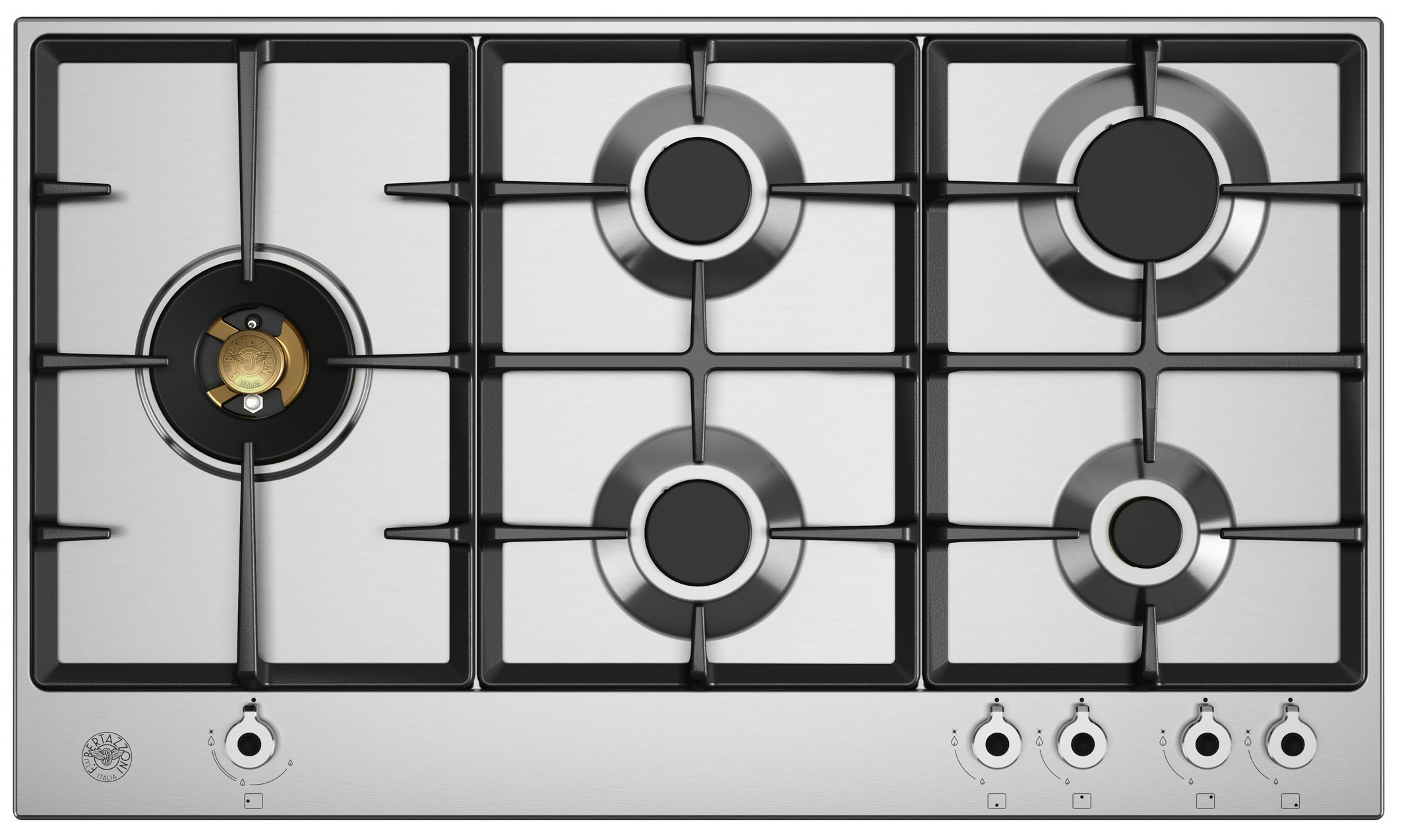 Bertazzoni P905LPROX. Colore del prodotto: Acciaio inox, Posizionamento dell’apparecchio: Superficie piana, Dimensione della larghezza del piano cottura: 89 cm. Tipo di controllo: Manopola, Posizione di controllo: Front / Top front. Larghezza: 890 mm, Profondità: 522 mm, Altezza: 6,5 mm. Larghezza imballo: 990 mm, Profondità imballo: 665 mm, Altezza imballo: 190 mm