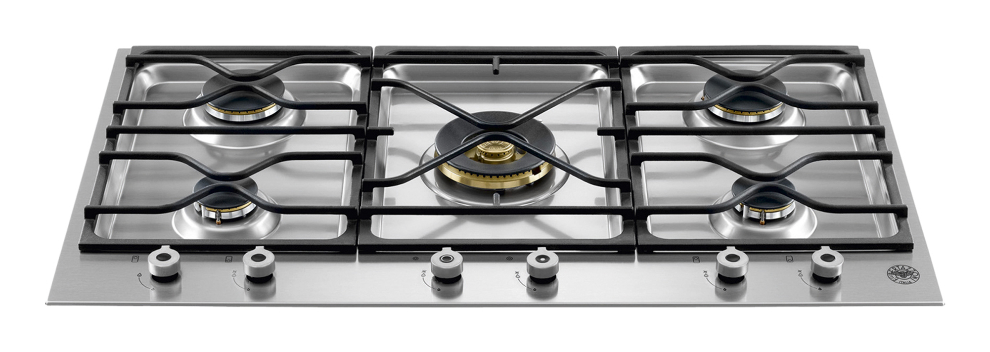Questo piano cottura da 90 cm a segmenti funzionali della Serie Professional è in acciaio inossidabile. I suoi cinque fuochi in ottone, il doppio bruciatore wok da 5 kW e le precise manopole in metallo, garantiscono una cottura ancora più semplice, versatile e precisa. Le griglie di appoggio in ghisa sono robuste e sicure. Disponibile in acciaio inossidabile e smalto nero.