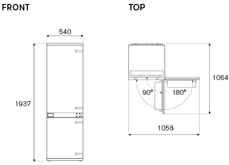 La porta reversibile pannellabile per installazione battente sinistra o destra consentono un’installazione con uno spazio laterale minimo rispetto ai mobili adiacenti. Classe di efficienza energetica E.