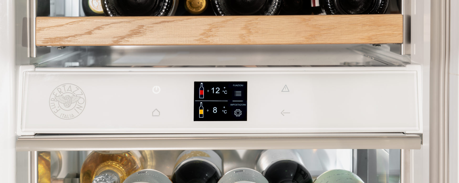 Le nuove cantine vini Bertazzoni permettono di conservare la tua collezione di vini nelle migliori condizioni possibili. Oltre a garantire il perfetto controllo della temperatura, è possibile controllare l’umidità attraverso i comandi digitali per le due zone separate.