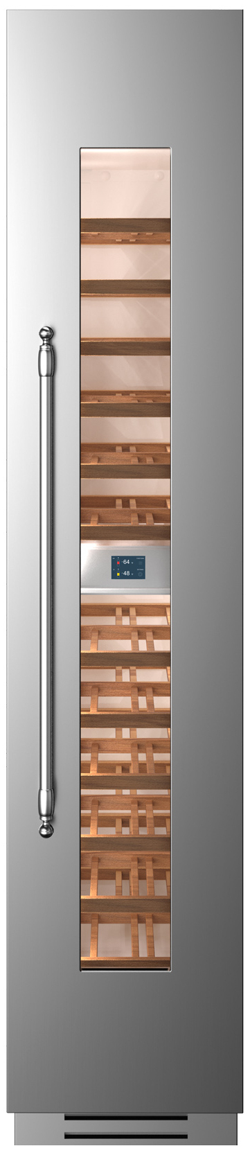 Queste cantine vini da incasso, dotate di eleganti pannelli in acciaio inox, sono capolavori di progettazione e tecnologia Bertazzoni e riflettono la meticolosa attenzione ai dettagli e l’uso di materiali di alta qualità, sia interni che esterni.