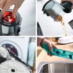 La manutenzione è molto semplice e igienica. È sufficiente svuotare il serbatoio dell’acqua pulita, se non è già vuoto. Grazie alle apposite linguette sui panni in microfibra, questi possono essere rimossi e messi in lavatrice senza entrare a contatto con lo sporco. I panni in microfibra riutilizzabili possono essere lavati a 40°C in lavatrice oppure possono essere lavati a mano. Per motivi igienici, si consiglia di lavarli in lavatrice dopo ogni utilizzo. Anche il contenitore della polvere è facile e igienico da pulire. Si può svuotare direttamente nel cestino.