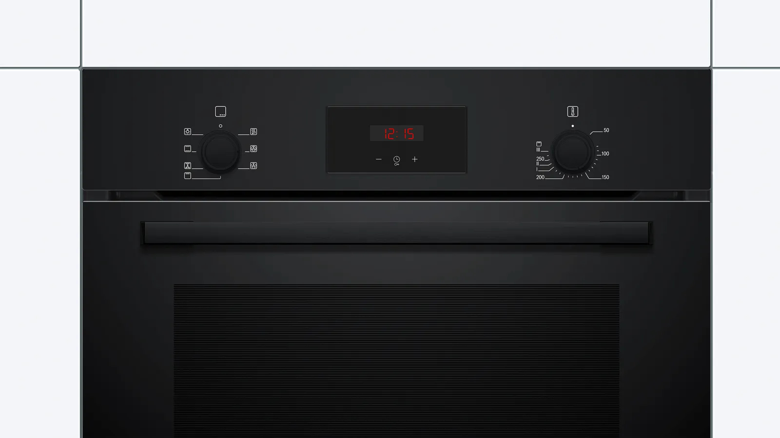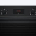 Bosch HBF133BA1 Serie 2 Forno multifunzione Nero Classe A. Dimensione del forno: Media, Tipo di forno: Forno elettrico, Capacità interna forno totale: 66 L. Posizionamento dell’apparecchio: Da incasso, Colore del prodotto: Nero, Tipo di controllo: Manopola, Touch. Tipo di orologio: Elettronico. Classe efficienza energetica: A, Consumo energetico (convenzionale): 0,98 kWh, Consumo energetico (convezione forzata): 0,79 kWh. Quantità lampade: 1 lampada(e), Tipo di lampada: Alogena