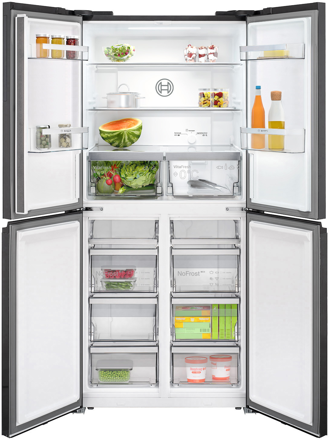 Bosch Serie 4 KMC85LEEA. Posizionamento dell’apparecchio: Libera installazione, Design del prodotto: Porta francese, Colore del prodotto: Grigio. Capacità netta totale: 547 L, Classe climatica: SN-T, Classe emissione rumore: C. Capacità netta frigorifero: 324 L, Tipo di lampada: LED. Capacità netta congelatore: 223 L, Posizione del congelatore: Posto in basso, Capacità di congelamento: 15 kg/24h. Lunghezza cavo: 2,4 m
