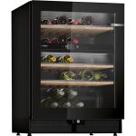 Bosch Serie 6 KWK16ABGB. Posizionamento dell’apparecchio: Libera installazione, Colore struttura: Nero, Colore interno: Argento. Capacità bottiglie: 44 bottiglia/bottiglie, Tipo di prodotto: Cantinetta vino con compressore, Intervallo temperatura (zona 1): 5 – 20 °C. Tipo di controllo: Touch, Lunghezza cavo: 2,3 m, Tipo di lampada: LED. Classe efficienza energetica: G, Consumo energetico annuo: 142 kWh, Scala di efficienza energetica: Da A a G. Larghezza: 600 mm, Profondità: 593 mm, Altezza: 818 mm