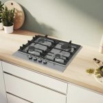 Piano cottura a gas con controllo preciso della fiamma Flame Select e facile pulizia grazie alle manopole magnetiche removibili e alle griglie in ghisa lavabili in lavastoviglie.